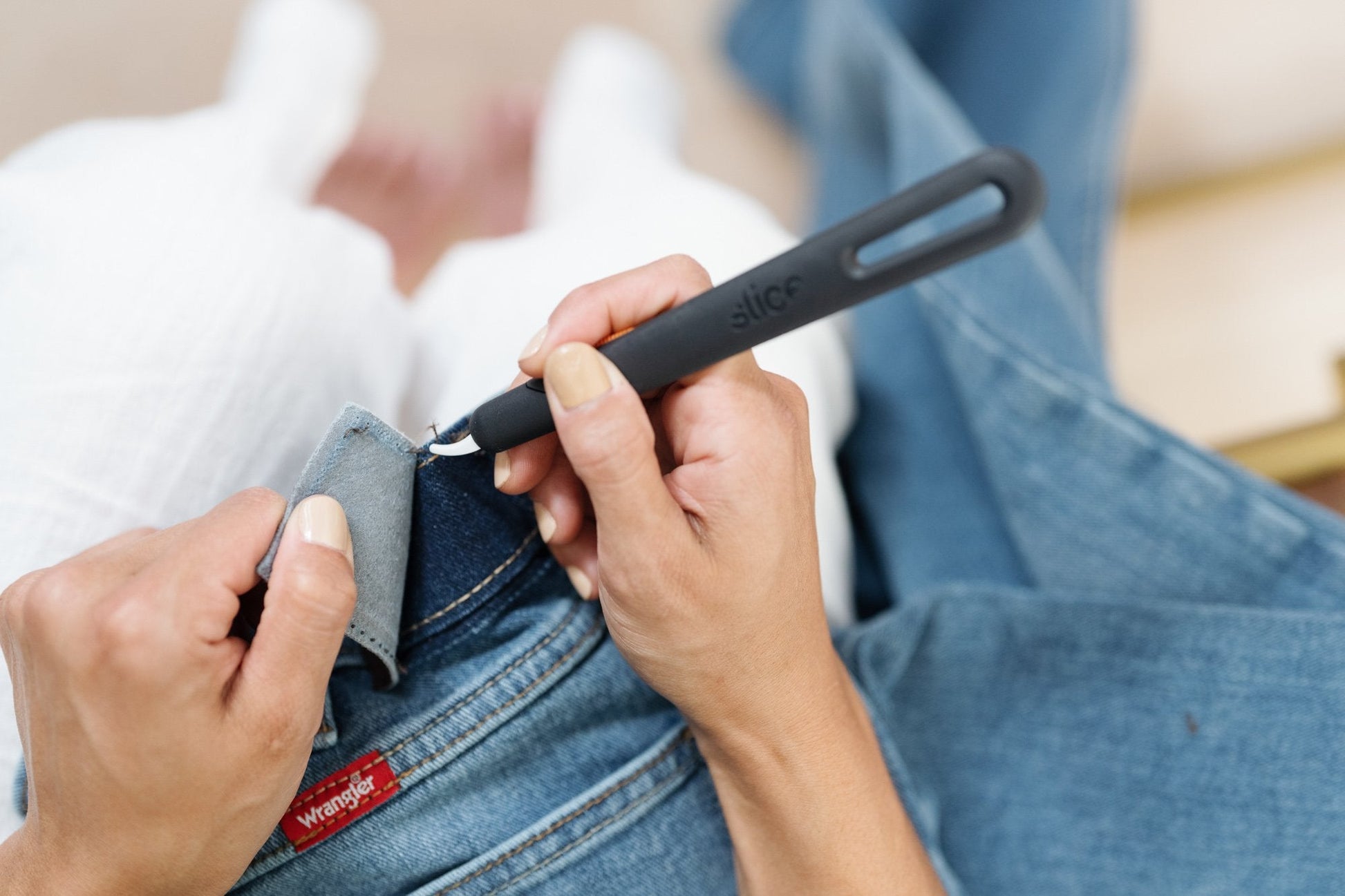 We considered the question, “what does a seam ripper look like?” with fresh eyes and redesigned the handle and blade for a safer, more ergonomic seam ripper. Of course, we used our finger-friendly® blade edge to ensure that, while our seam cutter slices thread effectively, it’s safe to the touch and unlikely to cut skin. This safety feature is especially important when ripping out a long seam, as hand muscles get tired over time and that’s when accidents tend to happen.