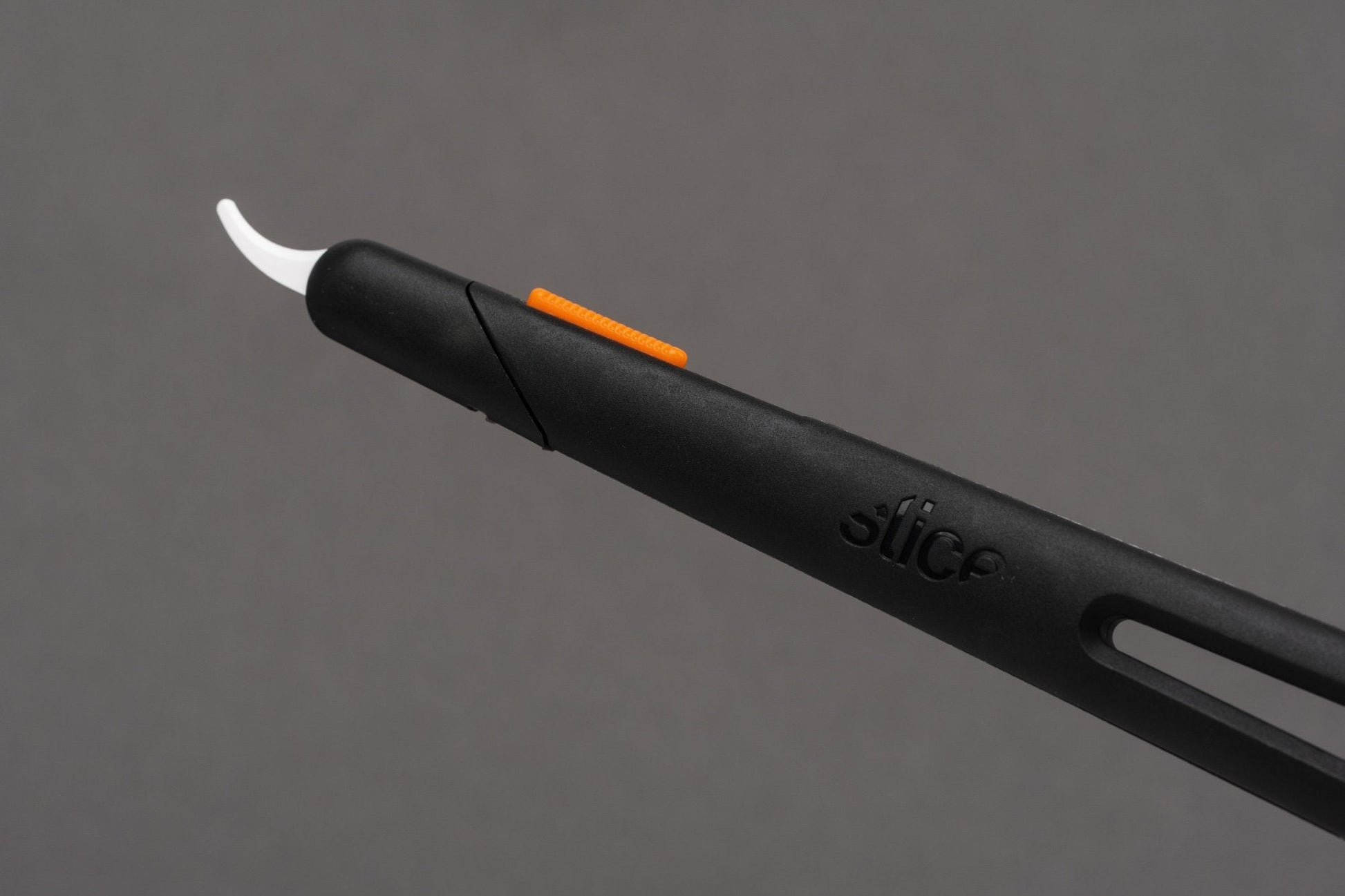 Polohovatelný rozparovač Slice® 10596 vám umožňuje výběr ze tří přednastavených poloh čepele: plně zatažená, částečně vytažená a plně vytažená. Jeho vyměnitelná čepel je chemicky netečná, nepodléhá korozi a vydrží až jedenáctkrát déle než ocelové čepele. Nainstalovaná finger-friendly® čepel je bezpečná na dotyk a snadno se čistí, takže nezašpiní nit ani látku. Lehká rukojeť z odolného vyztuženého nylonu poskytuje maximální pohodlí a snadno se s ní zachází. Rozparovač 10596 má navíc i otvor na závěsnou šňůrku, takže ho můžete mít vždy při ruce. K výměně čepele nepotřebujete žádné nářadí.